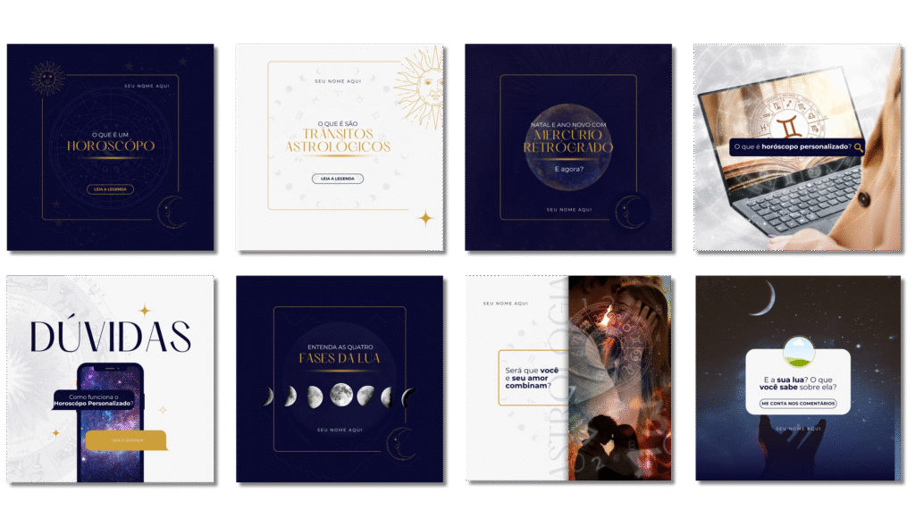 Você terá acesso à artes prontas, com conteúdo e legendas estratégicas para Astrologia e irá conquistar um perfil profissional e atraente para atrair mais clientes todos os dias em poucos cliques!