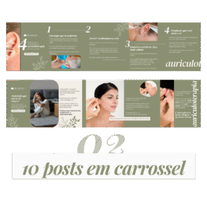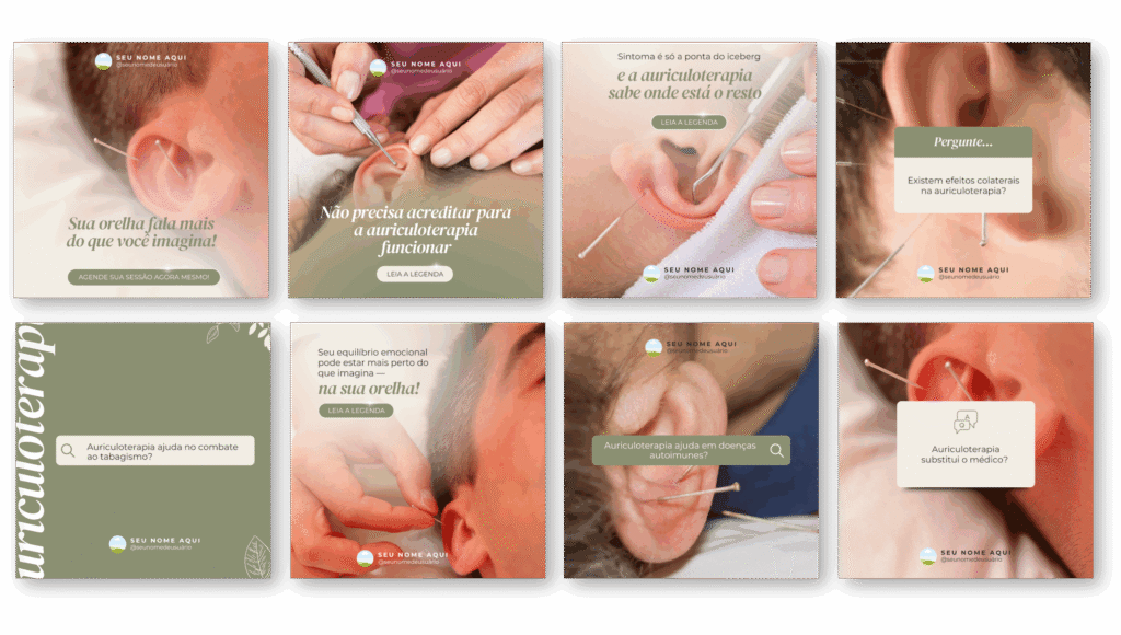 Você terá acesso à artes prontas, com conteúdo e legendas estratégicas para Auriculoterapia e irá conquistar um perfil profissional e atraente para atrair mais clientes todos os dias em poucos cliques!