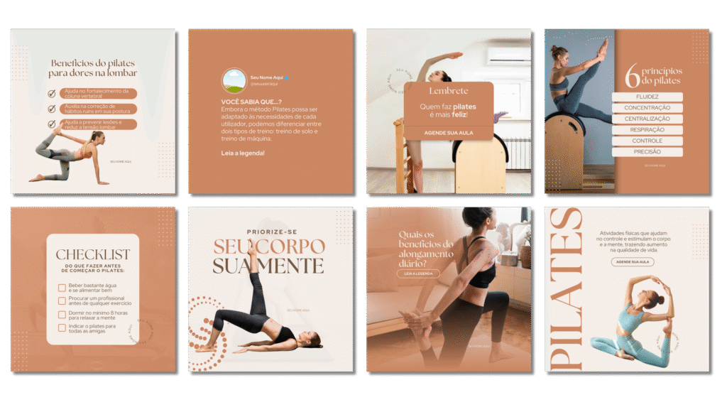 Você terá acesso à artes prontas, com conteúdo e legendas estratégicas para Pilates e irá conquistar um perfil profissional e atraente para atrair mais clientes todos os dias em poucos cliques!
