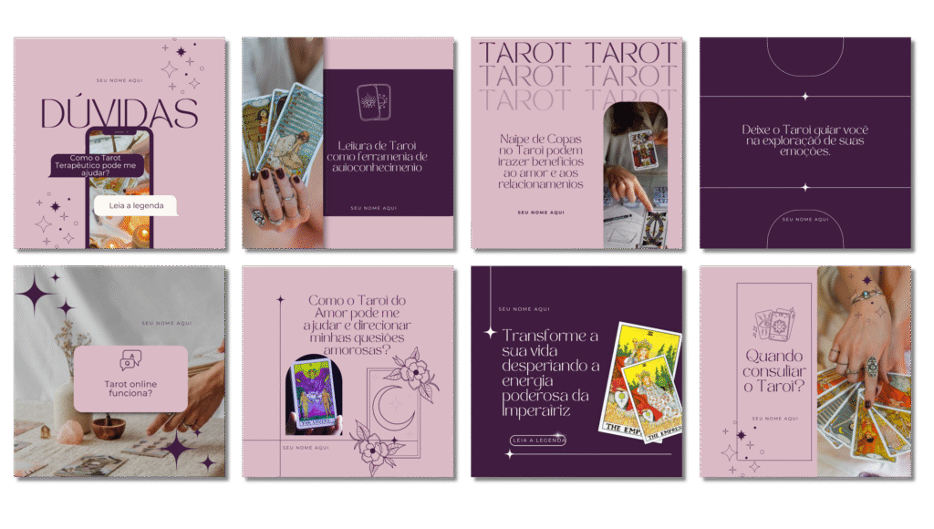 Você terá acesso à artes prontas, com conteúdo e legendas estratégicas para Tarot e irá conquistar um perfil profissional e atraente para atrair mais clientes todos os dias em poucos cliques!