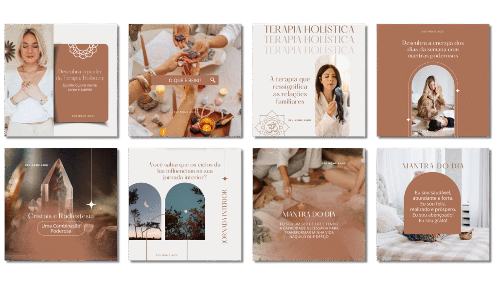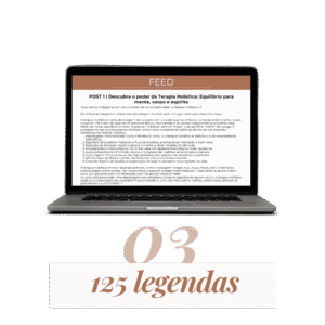 Você terá acesso à artes prontas, com conteúdo e legendas estratégicas para Terapia Holística e irá conquistar um perfil profissional e atraente para atrair mais clientes todos os dias em poucos cliques!